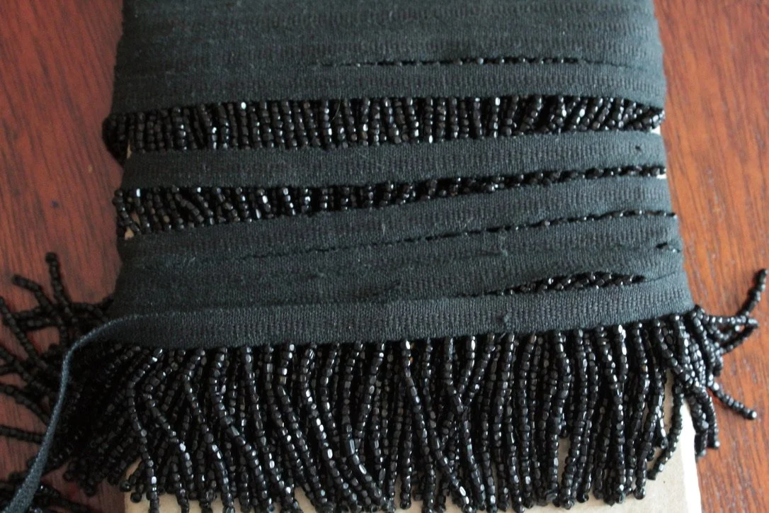 A roll of antique black glass beaded fringe trim, in excellent condition.
