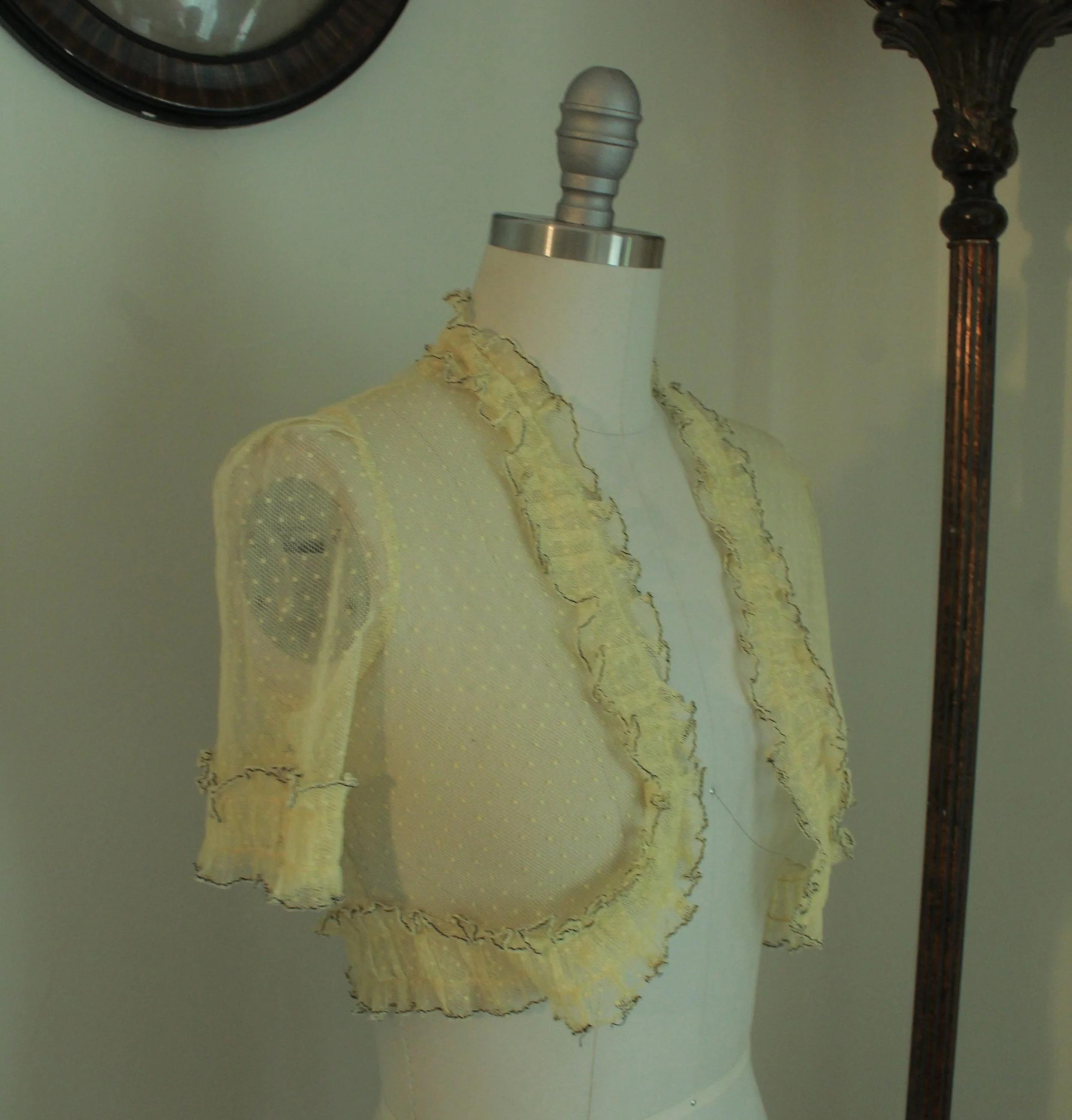 A 1950's plus sized black wiggle dress, with a side zipper and draped collar in excellent condition. The rhinestone brooch in front looks to be original. The fabric is a slightly sheer ribbed synthetic material with a bit of stretch. There are belt loops at the waistband. There is shaping with pleats as well.